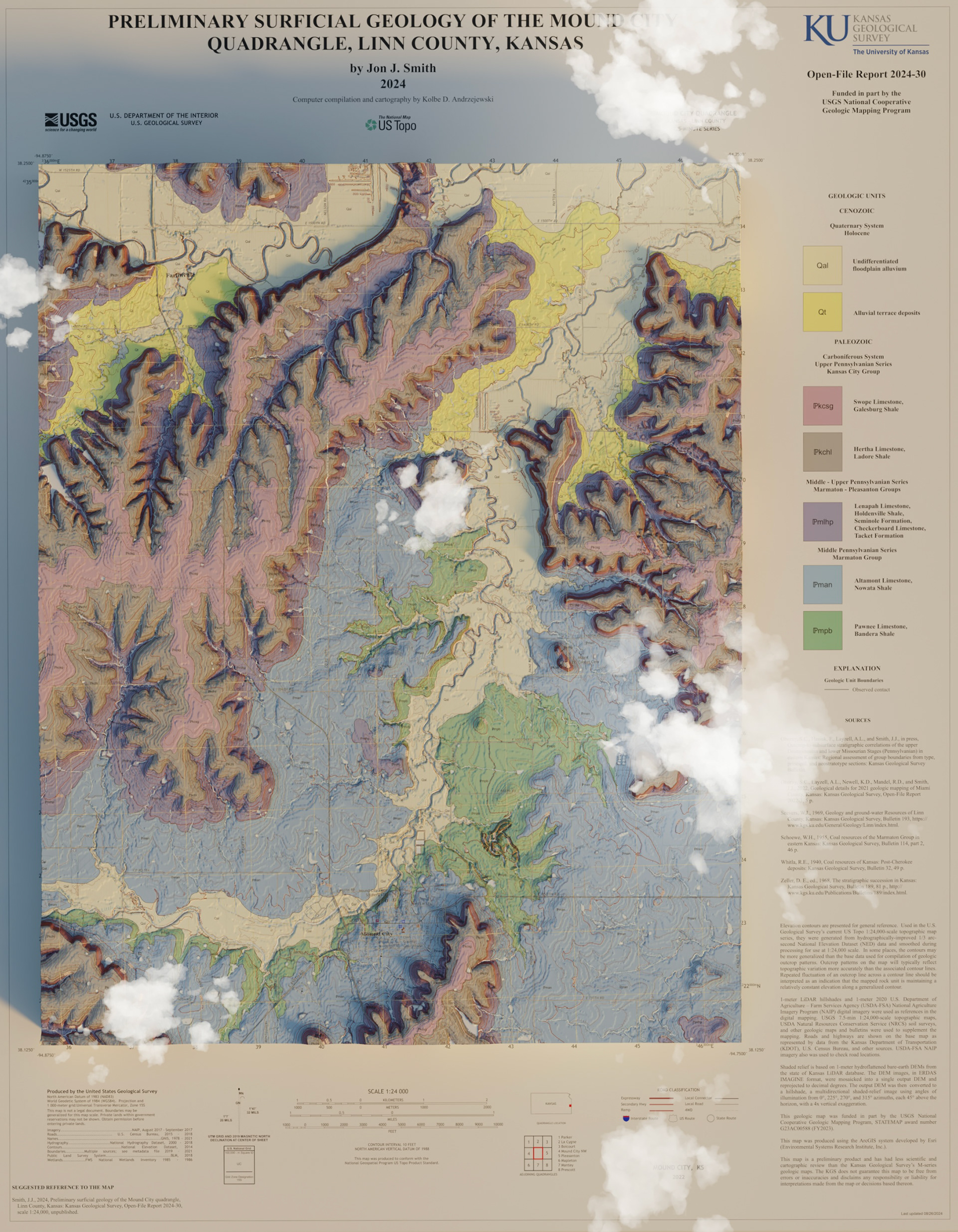 3D render of surficial geology of Linn county, Kansas