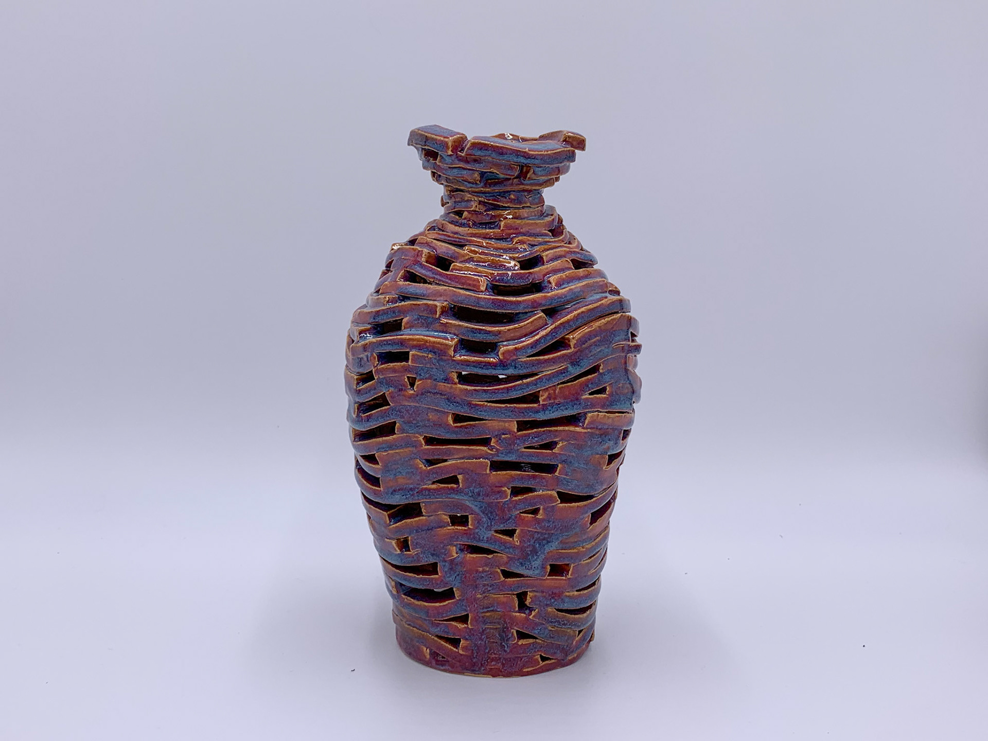 Layered slabs in the form of a vase finished in high-fire glazes 10x5.5x5.5 in.